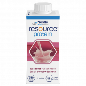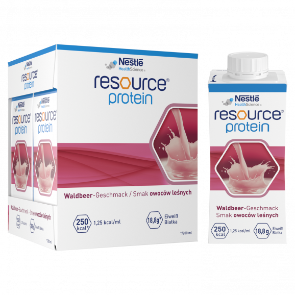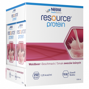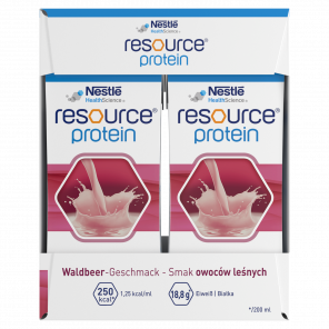 Nestle Resource Protein smak owoce leśne to wysokobiałkowy środek spożywczy specjalnego przeznaczenia medycznego, idealny dla osób z ryzykiem niedożywienia lub wymagających wsparcia dietetycznego, takich jak osoby po leczeniu onkologicznym, w okresie rekonwalescencji, czy osoby z utratą masy mięśniowej.