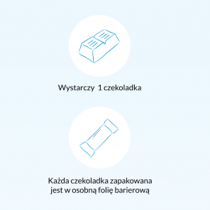 - Dzieci powyżej 3 lat: 1 czekoladka dziennie.