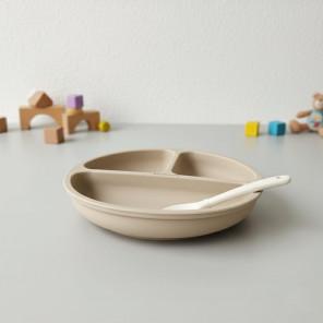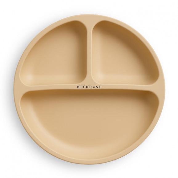 Talerzyk silikonowy z podziałką i przyssawkami (beżowy) Bocioland, 1 szt.