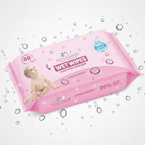 Bocioland Delikatne chusteczki nawilżane dla dzieci – 99% Wody (60 sztuk)