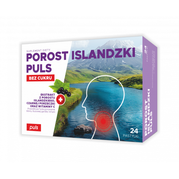 PULS Porost Islandzki, pastylki do ssania bez cukru, 24 szt. – naturalna ulga dla gardła i krtani
