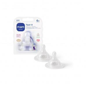 MAM Smoczek silikonowy do butelki SkinSoft 6m+ rozmiar X do gęstych płynów (2 sztuki)