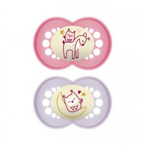 MAM Original Night Smoczek uspokajający, ortodontyczny, silikonowy 16m+ Planet Love Girl świecący w ciemności, 2 sztuki