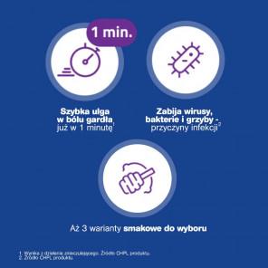 ➡️ Miejscowe leczenie antyseptyczne stanów zapalnych gardła i jamy ustnej oraz łagodzenie objawów bólu w tych obszarach.