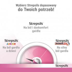 - Nazwa produktu: Strepsils Junior, pastylki do ssania bez cukru o smaku truskawkowym, 24 sztuki