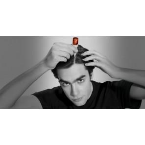 - Nałożyć zawartość ampułki równomiernie na oczyszczoną skórę głowy, szczególnie na obszarach przerzedzonych włosów, delikatnie wmasować.