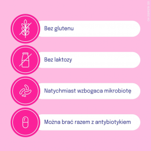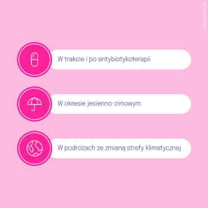➡️ Suplementacja mikroflory jelitowej, w trakcie i po antybiotykoterapii, podczas zmiany strefy klimatycznej, wsparcie w okresie jesienno-zimowym.