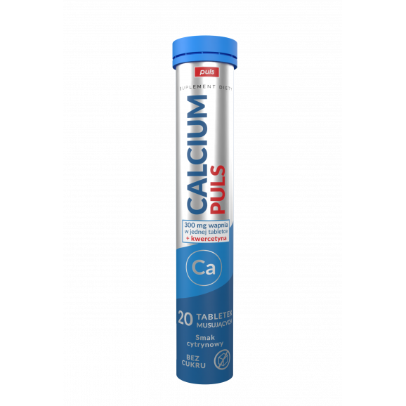 Calcium PULS 300 mg wapnia + kwercetyna – tabletki musujące bez cukru, smak cytrynowy (20 sztuk)