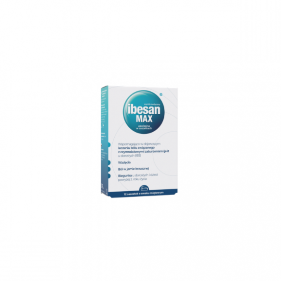 Ibesan MAX to wyrób medyczny przeznaczony do stosowania doustnego, zawierający połączenie dwóch substancji czynnych: diosmektytu oraz simetikonu. Produkt wspomagająco działa w dolegliwościach ze strony przewodu pokarmowego, takich jak: