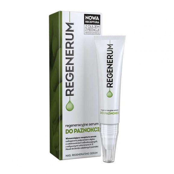 Regenerum Regeneracyjne serum do paznokci to kosmetyk stworzony z myślą o pielęgnacji nawet kruchych i bardzo łamliwych paznokci. Wzmacniająca receptura łączy oleje o właściwościach odbudowujących oraz odżywcze witaminy A i E. Dodatkowo kompleks kwasów AHA pomaga zwiększyć efektywność wchłaniania składników pielęgnujących, dzięki czemu płytka paznokcia może wyglądać na wyraźnie wzmocnioną i bardziej odporną na uszkodzenia.