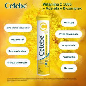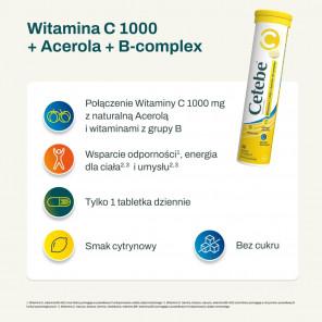 [30.06.2026] Cetebe Witamina C 1000 + Acerola + B-complex – suplement diety (20 tabletek musujących, smak cytrynowy)
