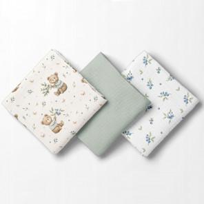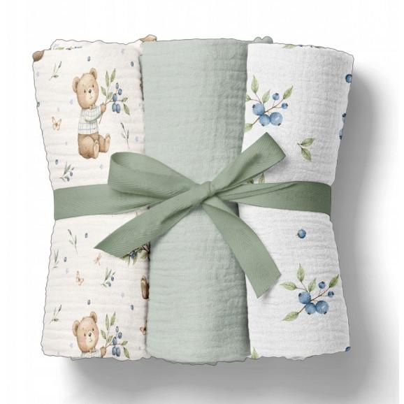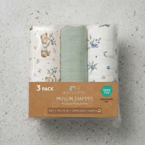 Bocioland 3022 Pieluszki muślinowe 70x70 cm 3-pack zielone BL302