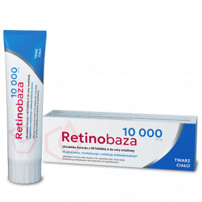 - Retinobaza 10 000 – stosować na noc na oczyszczoną skórę twarzy