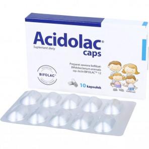 Acidolac caps to suplement diety zawierający liofilizowane kultury bakterii probiotycznych: Bifidobacterium lactis BS01 oraz Lactobacillus acidophilus LA02. Preparat może być stosowany u dzieci powyżej 6. roku życia oraz osób dorosłych.