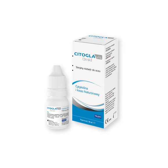 - Sterylny roztwór do oczu z cytykoliną (2%) i kwasem hialuronowym (0,2%) o wysokiej masie cząsteczkowej.