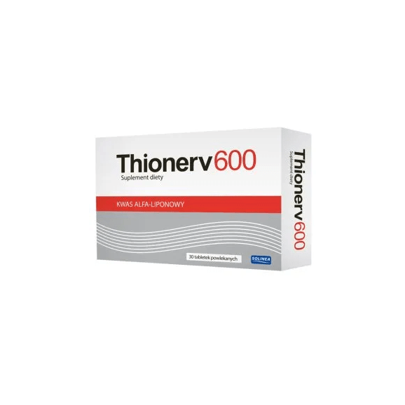 Thionerv 600 to suplement diety w postaci tabletek powlekanych zawierający kwas alfa-liponowy (ALA). Odpowiedni dla osób dorosłych. Każda tabletka powlekana zawiera 600 mg kwasu alfa-liponowego.