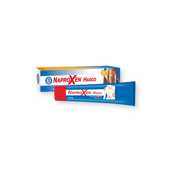 Żel Naproxen Hasco 100 mg/ g to lek wydawany bez przepisu lekarza (OTC) przeznaczony do miejscowego stosowania na skórę. Zastosowana w leku substancja czynna - naproksen wykazuje działanie przeciwbólowe i przeciwzapalne. Co więcej, substancja pomocnicza - lewomentol miejscowo znieczula i pozostawia uczucie chłodu na skórze. Przyczynia się również do rozszerzenia naczyń krwionośnych w miejscu zastosowania żelu i usprawnia przenikanie naproksenu do chorobowo zmienionych tkanek. Wodzian chloralu lekko drażni skórę, i podobnie jak lewomentol, korzystnie wpływa na zwiększenie skórnego przepływu krwi.