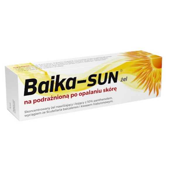 Baika-Sun to skoncentrowany żel nawilżający i kojący z 10 % panthenolem, wyciągiem ze Scutellaria baicalensis i kwasem hialuronowym.