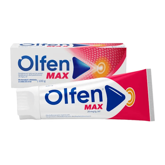 Żel Olfen Max to lek do stosowania na skórę o działaniu przeciwbólowym i przeciwzapalnym. Zawiera on diklofenak z grupy niesteroidowych leków przeciwzapalnych (NLPZ) i jest przeznaczony do objawowego leczenia miejscowego ostrych nadwyrężeń, stłuczeń czy skręceń. Olfen Max jest przeznaczony dla młodzieży w wieku powyżej 14 lat oraz osób dorosłych.