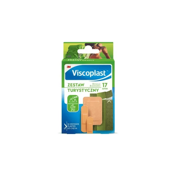 Viscoplast Zestaw Turystyczny plastry z opatrunkiem to wyrób medyczny stworzony z myślą o zabezpieczaniu ran, skaleczeń i otarć na świeżym powietrzu - podczas wędrówek, jazdy na rowerze, zabawie - wszędzie tam, gdzie ich opatrzenie jest potrzebne i pozwala na kontynuowanie aktywności. Zestaw zawiera 17 plastrów o różnych kształtach i rozmiarach.
