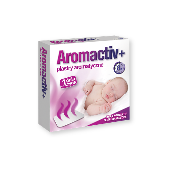 Plastry aromatyczne Aromactiv+ zawierają odświeżającą kompozycję zapachową. Nakleja się je na ubranko dziecka lub w łóżeczku, poza zasięgiem jego rąk. Dzięki temu plastry nie mają kontaktu ze skórą dziecka i nie powodują podraznień. Dzięki swej bezpiecznej formie mogą być stosowane u dzieci już od 1. dnia życia. Plastry Aromactiv+ działają do 8 godzin i można je używać zarówno w dzień jak i w nocy.