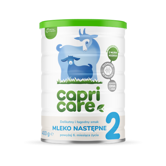• Środek spożywczy Capricare 2 to pokarm do niemowląt po ukończeniu 6 miesięcy życia, które nie mogą być karmione piersią. Oparty jest na pełnym mleku kozim, zawiera także dodatek niezbędnych witamin, składników mineralnych i innych składników niezbędnych dla prawidłowego wzrostu i rozwoju dziecka. Mleko następne jest elementem zbilansowanej, stopniowo rozszerzanej diety dziecka.