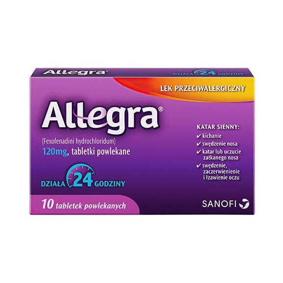 Allegra to produkt leczniczy do stosowania w katarze siennym (z towarzyszącym kichaniem, swędzeniem, katarem) z objawami zaczerwienienia i łzawienia oczu.