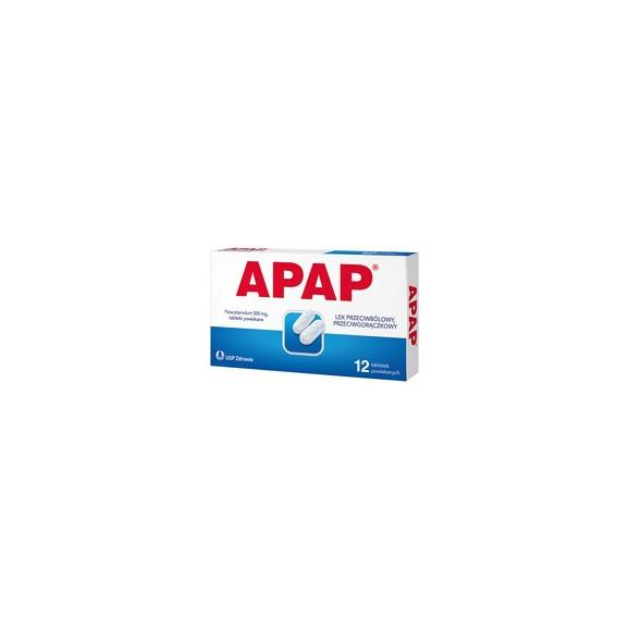 Apap to lek przeciwbólowy i przeciwgorączkowy, który jako substancję czynną zawiera paracetamol. Lek stosuje się w bólach różnego pochodzenia, zarówno głowy, zębów, mięśni jak i menstruacyjnych, kostno-stawowych czy nerwobólach. Apap można stosować przeciwko gorączce, np. towarzyszącej przeziębieniu lub grypie. Lek jest przeznaczony dla osób dorosłych i młodzieży w wieku powyżej 12 lat.