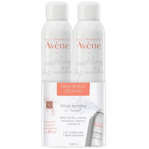 Avene, woda termalna, do ciała i twarzy, pielęgnacja skóry wrażliwej, alergicznej i podrażnionej, 300 ml + 300 ml