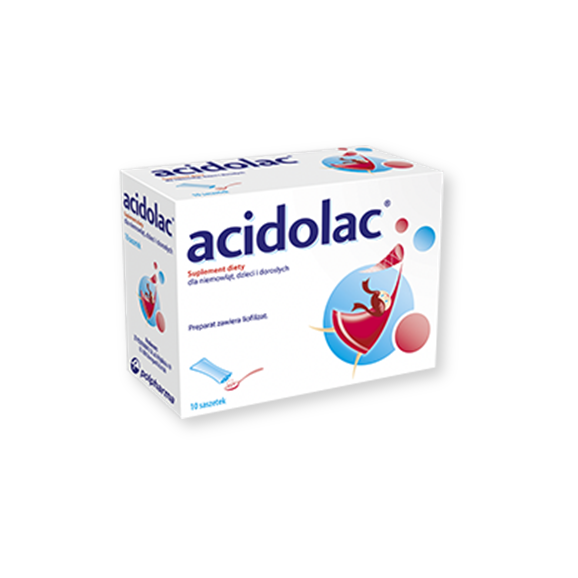 Acidolac - suplement diety zawierający w swoim składzie Lactobacillus rhamnosus GG ATCC 53103. Przeznaczony dla niemowląt, dzieci i dorosłych.