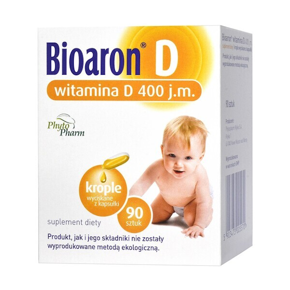 Bioaron D, 400 j.m., witamina D, krople wyciskane z kapsułki, 90 szt.