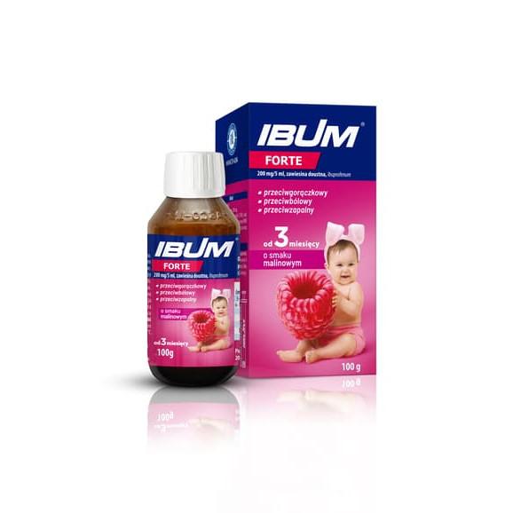 Ibum forte, 200 mg/5 ml, zawiesina doustna o smaku malinowym, 100 g