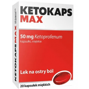 Ketokaps Max 50 mg to lek przeciwbólowy w postaci miękkich kapsułek, zawierający substancję czynną - ketoprofen. Należy ona do grupy niesteroidowych leków przeciwzapalnych o działaniu przeciwbólowym, przeciwzapalnym i przeciwgorączkowym. Jego mechanizm działania polega prawdopodobnie na hamowaniu działania prostaglandyn. Lek przeznaczony jest dla dorosłych i młodzieży powyżej 15 lat.
