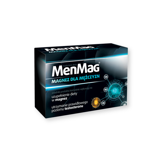 MenMag - suplement diety zawierający składniki wspomagające prawidłowy poziom testosteronu. Produkt przeznaczony dla osób dorosłych.
