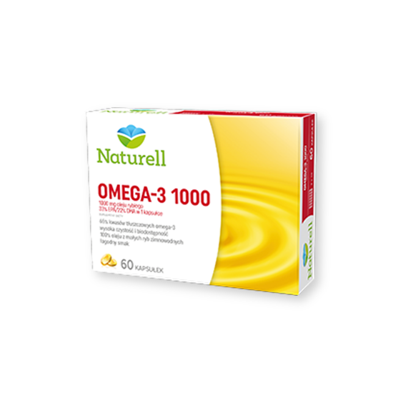 Omega-3 1000 - suplement diety, uzupełniający dietę w nienasycone kwasy tłuszczowe omega -3. Produkt przeznaczony dla osób dorosłych i dzieci powyżej 2 roku życia.