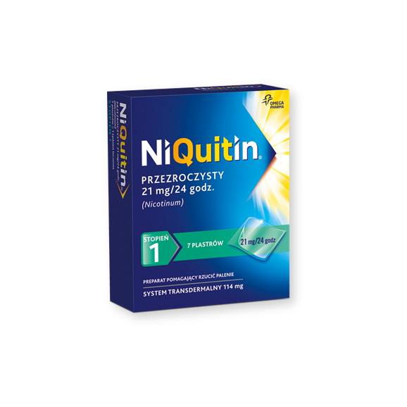 Niquitin przezroczysty, 21 mg/24 h, system transdermalny 114 mg, stopień 1, plastry, 7 szt.