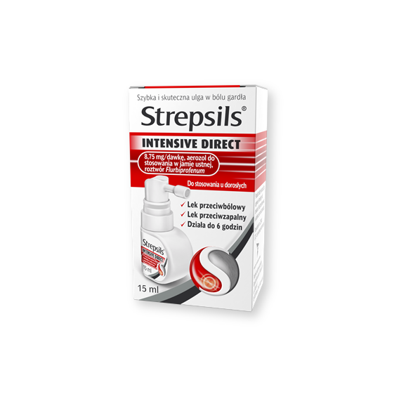 Strepsils Intensive Direct to produkt leczniczy dla dorosłych od 18 roku życia przeznaczony do krótkotrwałego łagodzenia objawów stanu zapalnego gardła.