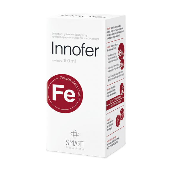 Innofer to żywność specjalnego przeznaczenia medycznego w postaci zawiesiny zawierającej żelazo elementarne w celu zapobiegania niedoborowi żelaza i niedokrwistości z niedoboru żelaza (anemii) dla niemowląt, dzieci i dorosłych. Żelazo elementarne zawarte w produkcie Innofer charakteryzuje się bardzo wysoką zawartością żelaza i wysoką biodostępnością. Jest lepiej tolerowane niż sole żelaza, dzięki czemu nie powodują bólów brzucha, biegunek i zaparć.