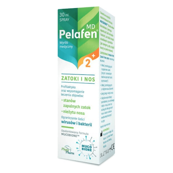 Pelafen MD Zatoki i Nos spray to wyrób medyczny stosowany w profilaktyce oraz wspomaganiu leczenia objawów stanów zapalnych zatok i nieżytu nosa różnego pochodzenia (m.in. infekcyjnego, alergicznego, w czasie zwiększonej ekspozycji na pyły). Preparat ułatwia mechaniczne usuwanie wirusów, bakterii, alergenów i innych szkodliwych czynników z jamy nosowej. Zapobiega to rozprzestrzenianiu się infekcji, a także pozwala osłabić objawy alergii.