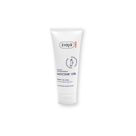 Krem do stóp Ziaja Med z mocznikem 15% - Formuła tego preparatu została oparta na 15-procentowym moczniku, który wykazuje wielorakie zastosowanie. Komponent ten jest jednym z głównych składników naturalnego czynnika nawilżającego. Fenomenalnie wiąże wodę w strukturze komórkowej, co skutkuje utrzymaniem optymalnego poziomu wilgotności naskórka. Dodatkowo pobudza proces regeneracji skóry. Specyfik zmniejsza dyskomfort spowodowany suchą i stwardniałą skórą.