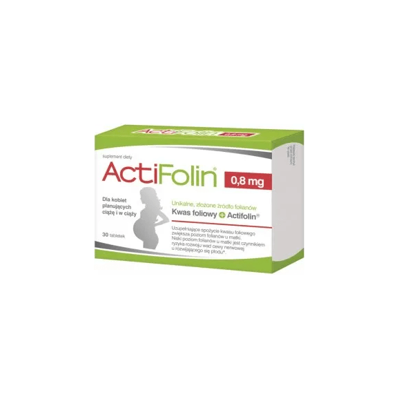 ActiFolin - suplement diety zawierający w swoim składzie kwas foliowy w tym foliany. Preparat przeznaczony dla kobiet planujących ciążę i kobiet w ciąży.