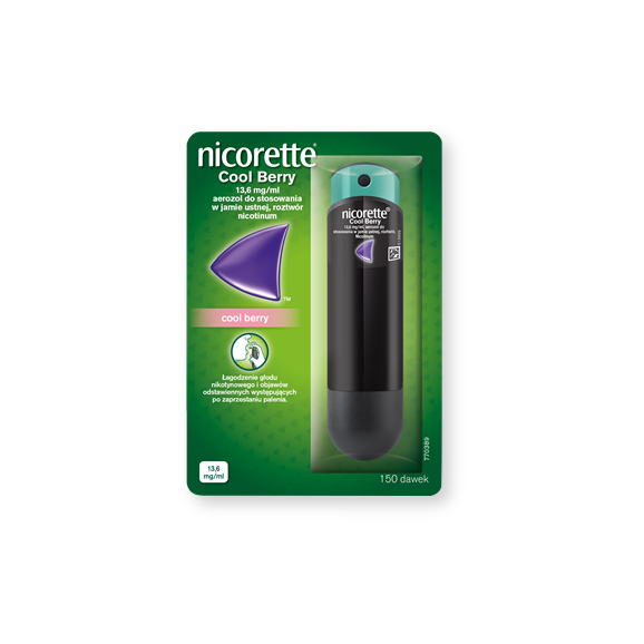 Nikotyna zawarta w Nicorette Cool Berry (aerozol) wchłania się szybciej niż z gum czy pastylek do ssania.