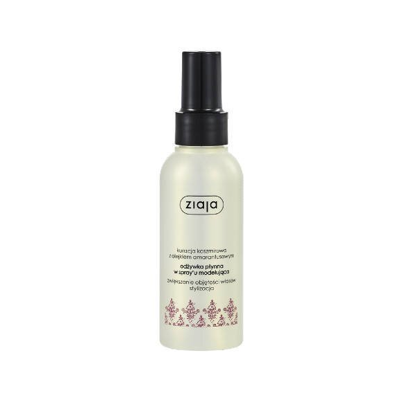 Ziaja kaszmirowa odżywka płynna w spray'u modelująca - Proteiny kaszmiru i olejek amarantusowy wnikają w głąb każdego pojedynczego włosa i nawilżają go, dzięki czemu w krótkim czasie nadają pasmom jedwabistą gładkość i miękkość. Czynią je sprężystymi i zwiększają ich objętość, co sprawia, że nawet zwykły kucyk wygląda atrakcyjnie i pociągająco. Pukle nie puszą się i nie elektryzują. Są łatwiejsze w rozczesywaniu i bardziej podatne na modelację. Pojemność 125 ml.