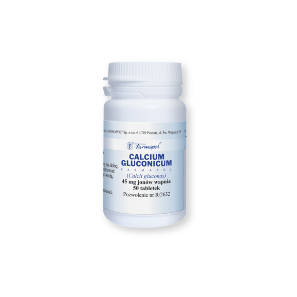 Calcium gluconicum Farmapol, 45 mg Ca 2+, tabletki, 50 szt.
