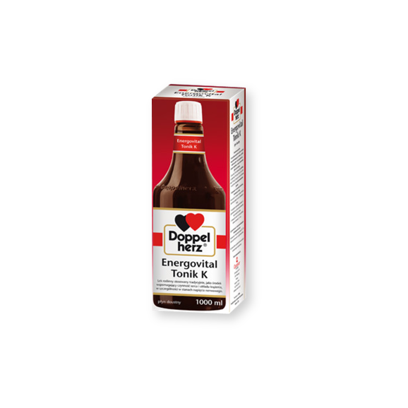 Doppelherz Energovital Tonik K to lek wspomagający czynność serca i układu krążenia, w szczególności w stanach napięcia nerwowego. Tonik można pić w trakcie posiłków oraz przed snem.