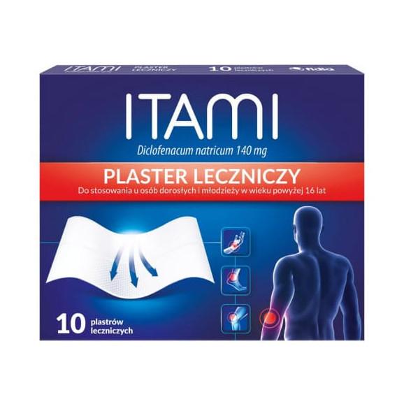 Itami to lek w postaci plastra leczniczego do krótkotrwałego stosowania u osób dorosłych i młodzieży w wieku powyżej 16 lat. Plaster stosuje się miejscowo w objawowym leczeniu bólu towarzyszącego nadwyrężeniom, zwichnięciom, stłuczeniom.