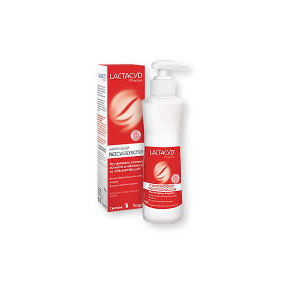 Lactacyd Pharma Płyn ginekologiczny, przeciwgrzybiczy - łagodzi uczucie swędzenia, pieczenia i podrażnienia spowodowane przez grzybice. Wzbogacony o składnik przeciwgrzybiczy i kojący wyciąg z nagietka, przywraca naturalną równowagę pH okolic intymnych, pozostawiając uczucie świeżości. Pojemność 250 ml.