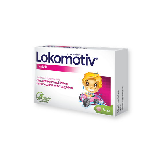 Lokomotiv -suplement diety zawierający składniki wpływające na poprawę złego samopoczucia lokomocyjnego. Produkt przeznaczony dla dorosłych i dzieci powyżej 6 roku życia.