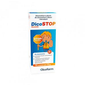 Dicostop (saszetki jednorazowe) jest wyrobem medycznym przeznaczonym do doustnego postępowania w ostrych i przewlekłych biegunkach oraz w dolegliwościach bólowych towarzyszących zaburzeniom czynności przewodu pokarmowego.