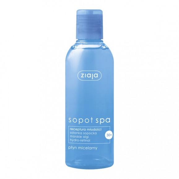 Ziaja Sopot Spa Płyn micelarny - skutecznie oczyszcza skórę z pozostałości kosmetyków i zanieczyszczeń nagromadzonych w ciągu całego dnia. Zapobiega przesuszeniu, łagodzi podrażnienia i zmniejsza uczucie ściągnięcia. Jest całkowicie bezpieczny dla oczu, także w przypadku stosowania szkieł kontaktowych. Pojemność 200 ml.